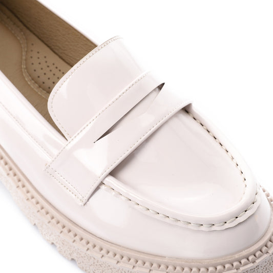 Tassel loafers in shinny beige faux leather